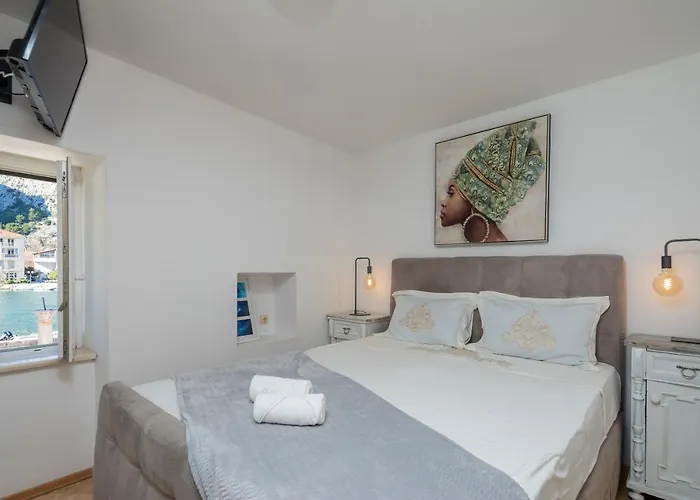 Den här strandnära lägenheten är placerad 12 minuters promenad till St. Michael's Square. Du kan ta en 18 minuters promenad och besöka Fortress Starigrad. Mirabellafästningen ligger i närheten och Omišs centrum är beläget 5 minuters promenad bort.